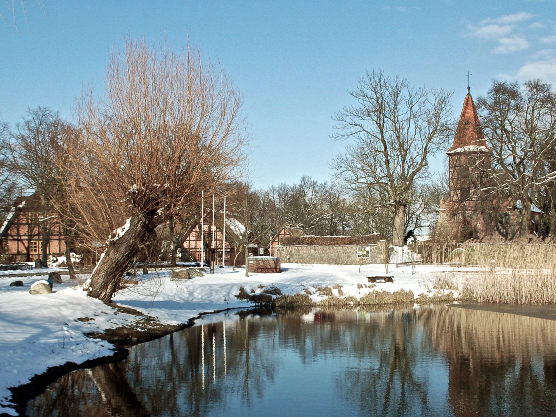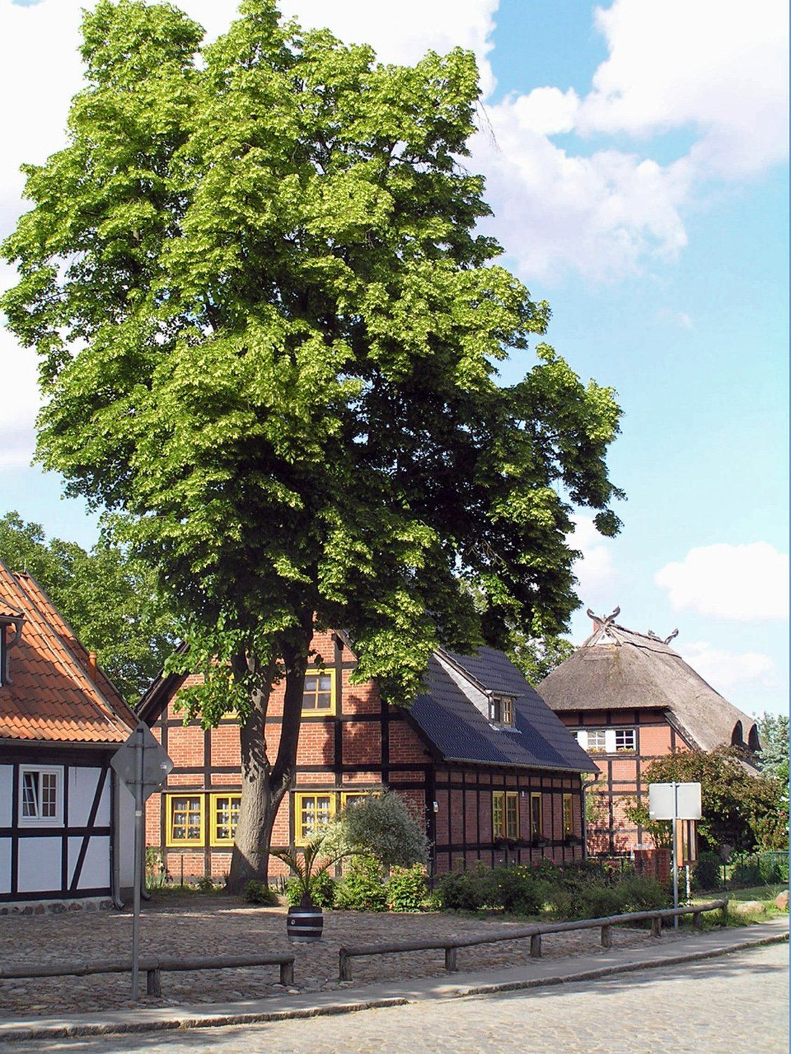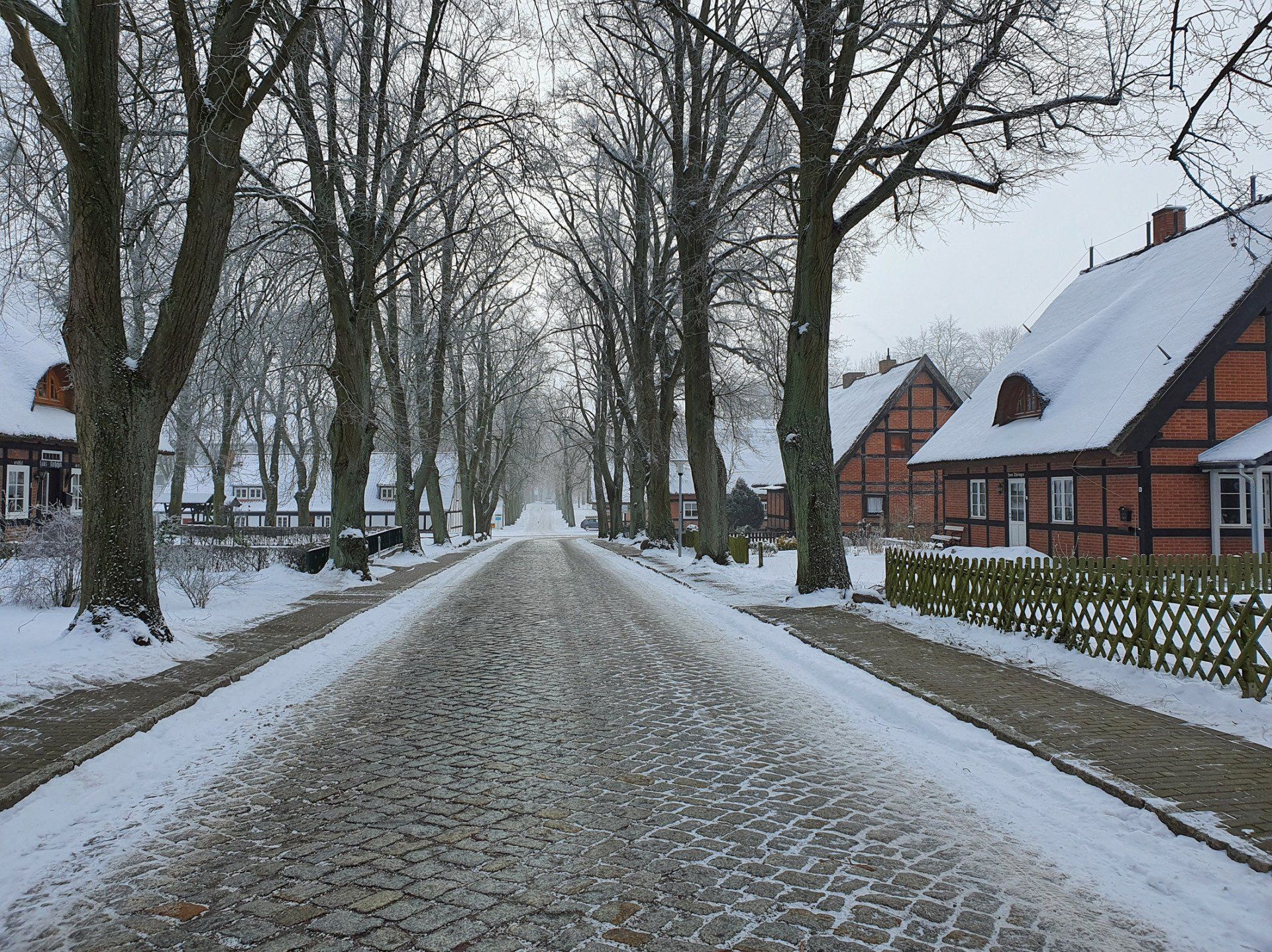 Den Dorfkern bildet heute ein einheitliches Bauensemble mit reetgedeckten Fachwerkhäusern, die unter Denkmalschutz stehen.